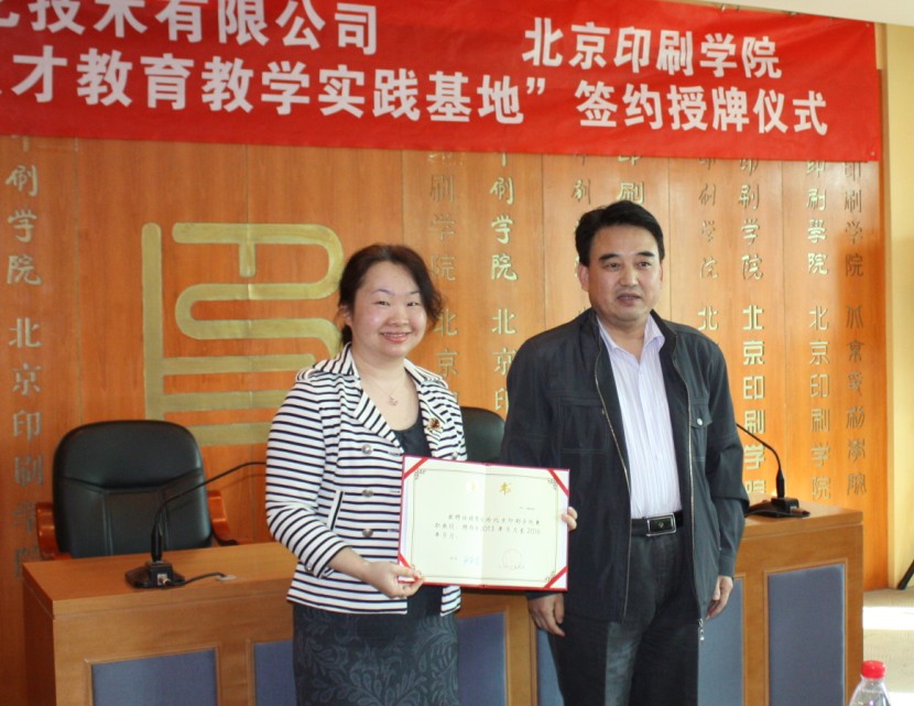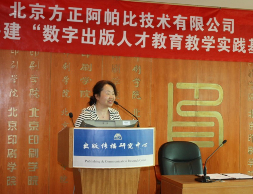 10月16日,北京印刷學(xué)院聘任方正阿帕比總經(jīng)理赫思佳女士為北京印刷學(xué)院兼職教授,副校長(cháng)王關(guān)義為赫思佳女士頒發(fā)兼職教授聘書(shū)。同時(shí),方正阿帕比還與北京印刷學(xué)院共建了數字出版人才基地,以期共同培養數字出版人才。
