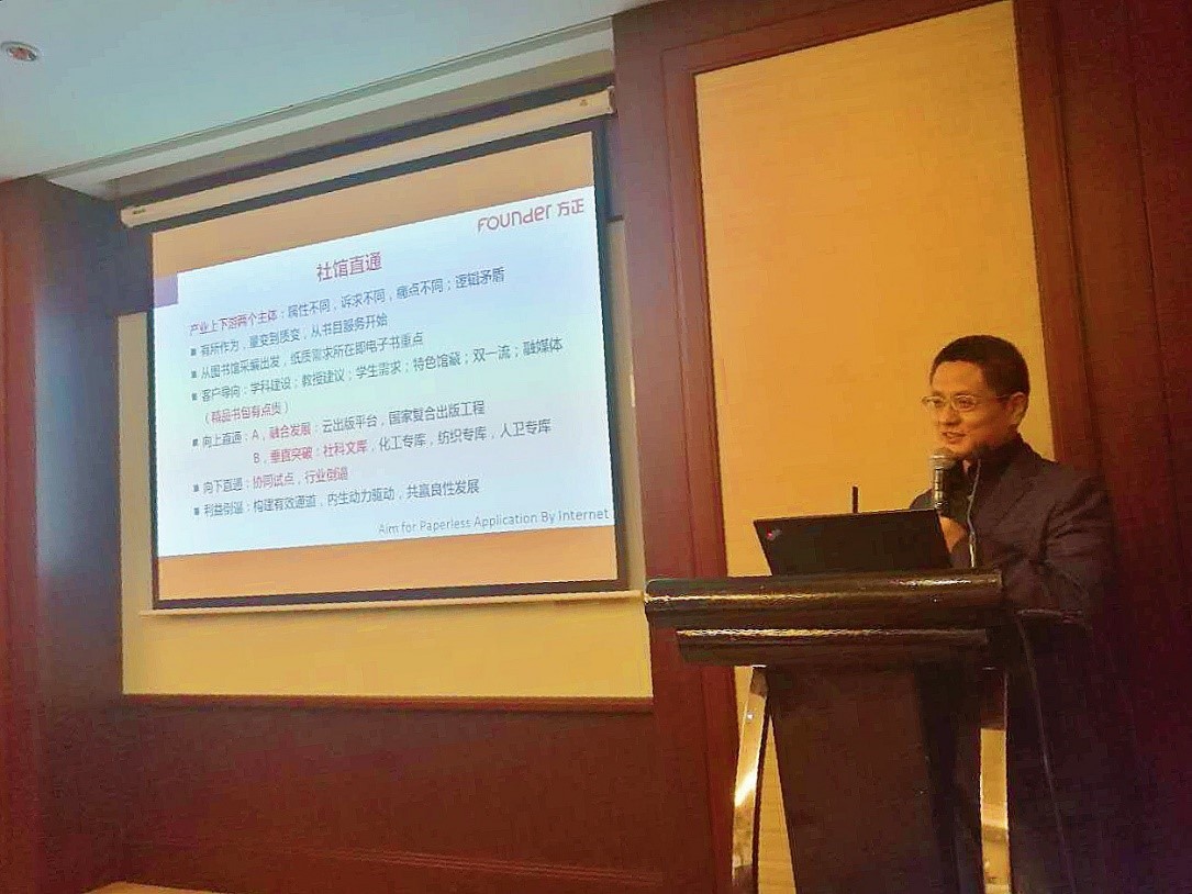 ↑圖為方正產(chǎn)品經(jīng)理介紹中華數字書(shū)苑